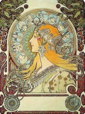 Alphonse Mucha was born in 1860 in Ivancice, Moravia, which is near the city of Brno in the modern Czech Republic. It was a small town, and for all intents and purposes life was closer to the 18th than the 19th century. Though Mucha is supposed to have started drawing before he was walking, his early years were spent as a choirboy and amateur musician. It wasn't until he finished high school (needing two extra years to accomplish that onerous task) that he came to realize that living people were responsible for some of the art he admired in the local churches. That epiphany made him determined to become a painter, despite his father's efforts in securing him "respectable" employment as a clerk in the local court.