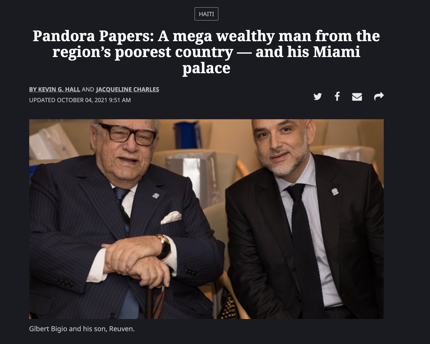 Bigio's name appeared in the 2021 Pandora Papers leak of secret offshore company documents by the ICIJ. In an accounting document from the estate of Jeffrey Epstein, Bigio was revealed as the buyer of Epstein's Mercedes Maybach at a price of $132,000.[4] Other leaked documents showed Bigio moving wealth to Miami and Switzerland through offshore companies in different tax havens.[5]