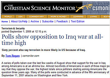 A recent American poll now says that only 30 percent of Americans support the war and most Americans think the war in Iraq will only increase terrorism around the world.