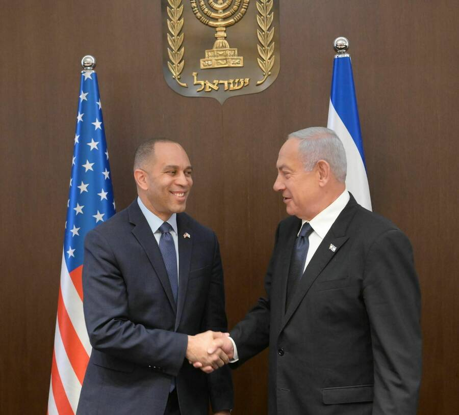 Over the weekend, Rep. Hakeem Jeffries, the House minority leader, landed in Israel as the Jewish state prepared to mark Independence Day. As the nearby conferences of the World Zionist Congress and Jewish Federations were roiled by protests against the presence of Israeli politicians responsible for the country’s controversial judicial overhaul plan, the Brooklyn Democrat led a delegation of 11 other House Democrats to meet with US Ambassador to Israel Thomas Nides, Israeli President Isaac Herzog, and Israeli Prime Minister Benjamin Netanyahu. The group discussed “the need to prevent Iran from obtaining nuclear weapons” and Israel’s normalization of ties with Arab states, according to a press release from Netanyahu’s office.
