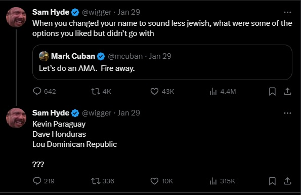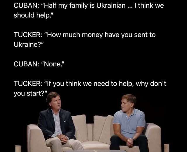 Here's another great recent exchange between Tucker and a shitbag jew bilionaire, Mark Cuban: