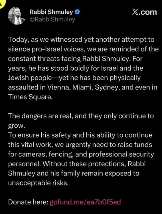 “Today, as we witnessed yet another attempt to silence pro-Israel voices, we are reminded of the constant threats facing Rabbi Shmuley,” wrote the former Republican politician and ally of Secretary of Health Robert F. Kennedy Jr. “For years, he has stood boldly for Israel and the Jewish people—yet he has been physically assaulted in Vienna, Miami, Sydney, and even in Times Square.”